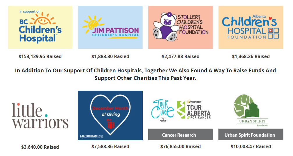 In total across Western Canada, EBH raised $158,959.39 for Children’s Hospitals, $267,303.47 raised in total.