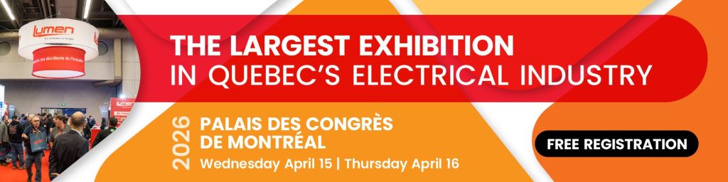 The Lumen Exhibition 2026 will take place on April 15 and 16 from 9am to 6pm at the Palais des congrès de Montréal! With more than 175 exhibiting manufacturers across 50,000 ft2 of floor space, it’s the must‑attend event of the electrical industry.
