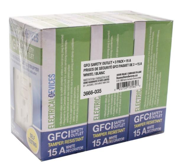 Product: Electrical Devices GFCI Safety Outlet sold at Home Hardware