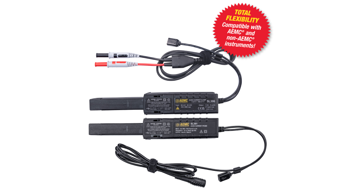 The AC/DC Current Probe Model SL306 is universally compatible. Its cord is equipped with 2 insulated male banana plugs allowing it to be connected to and compatible with any AEMC® and non-AEMC® digital multimeters, voltmeters, or any voltage-measuring instruments.