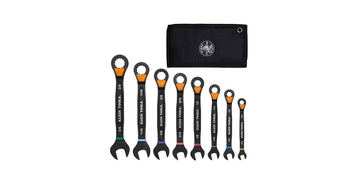Klein Tools Ratcheting Combination Slide-Lock Wrench Set, SAE, 8-Piece