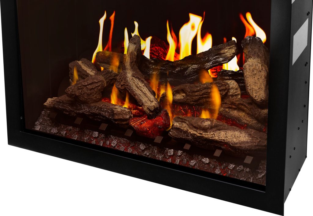 • High-definition glowing logs and modulating ember bed for a hyper-realistic burn;