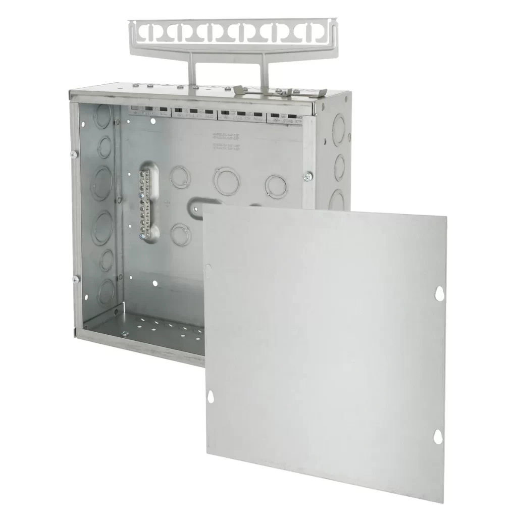 - Works with any 4″ and 4-11/16″ boxes and corresponding mud rings