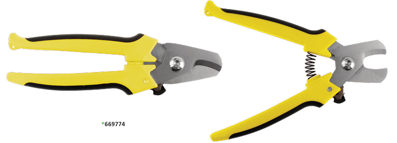 Techspan Wire Cutter (669774) with insulated handles for a more comfortable grip. Features a spring-loaded return with a safety latch for added protection. Cleanly cuts 28GA to 1GA Wire & Cable. Approximate length: 7.25″ (184.15mm)