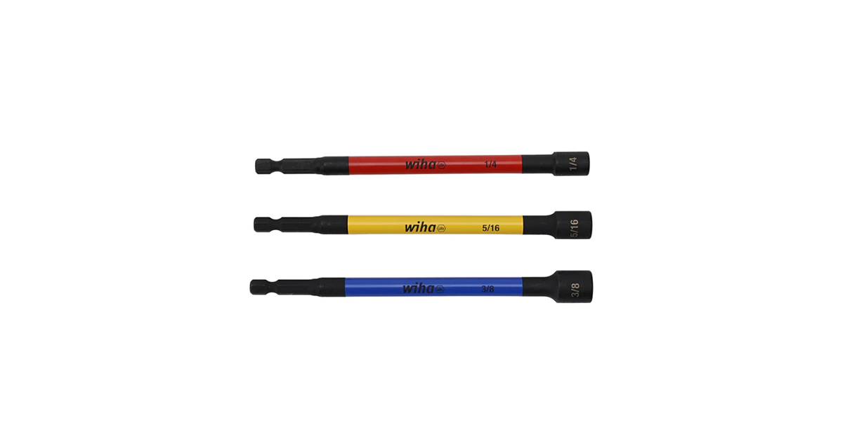 The nut setters feature industrial-strength magnets that securely retain fasteners to give you the freedom of one-handed work applications. 6-inch long magnetic nut setters come with a standard 1/4-inch hex drive making it easy to work in limited access environments. This three piece SAE set includes 1/4″, 5/16″, and 3/8″ sizes for a wide variety of applications. Wiha nut setters are built for a long duration. Color coded nut setters are made of premium quality CrMo tool steel and have a durable finish for corrosion protection.